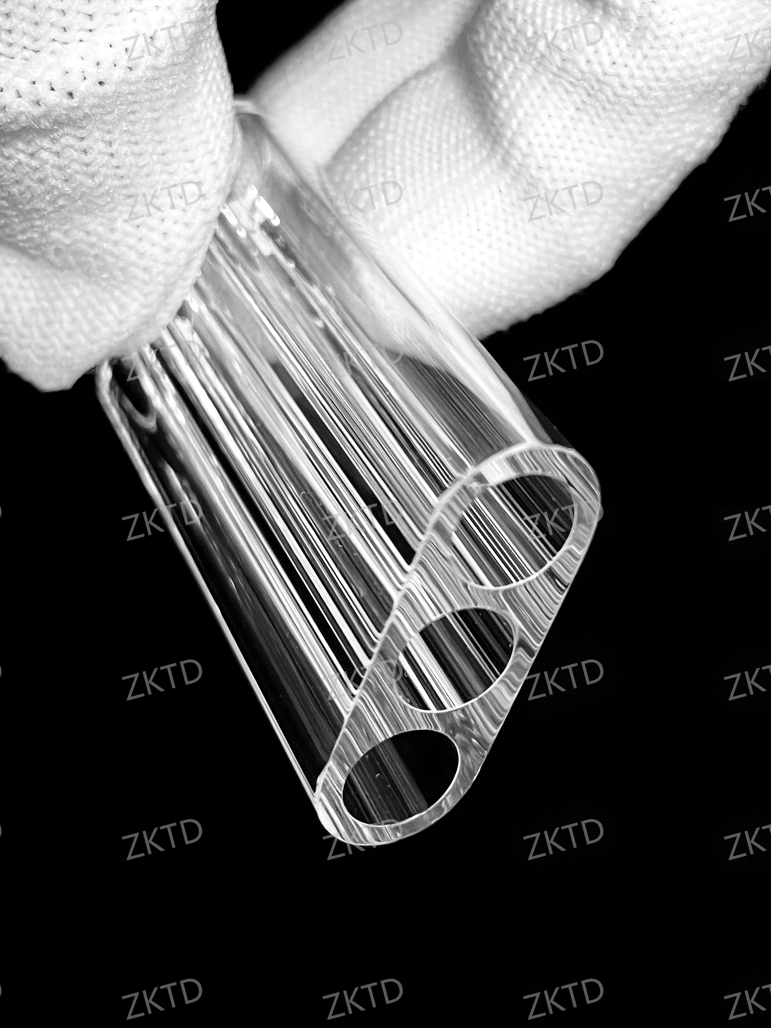 লেজার খুচরা যন্ত্রাংশ উচ্চ বিশুদ্ধতা কোয়ার্টজ ট্রিপল বোর কাস্টমাইজড প্রয়োজন অঙ্কন